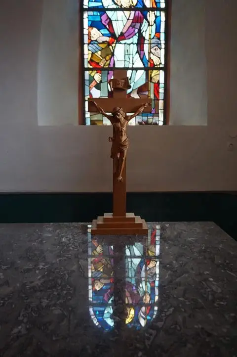Neben dem Pfarrbüro ist auch ein Gemeinschaftsraum vorhanden. In diesem werden in der kalten Jahreszeit die Gottesdienste abgehalten, da der Weg zur Kapelle im Winter nicht gestreut wird.