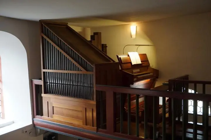 Die alte Orgel (Fa. Hess, Durlach, 1950: Gedackt 8‘, Praestant 4‘, Prinzipal 2‘, Cymbel 3fach; pneumatische Traktur), die 1991 aus Mannheim erworben wurde, wurde in Falkenbach ab 2007 nicht mehr gebraucht. Daher entschieden die Kirchenvorstände Gräveneck-Falkenbach und Wirbelau, die Orgel zu überarbeiten und erweitert in Wirbelau aufzustellen und damit das bisher benutzte alte elektronische Gerät zu ersetzen.