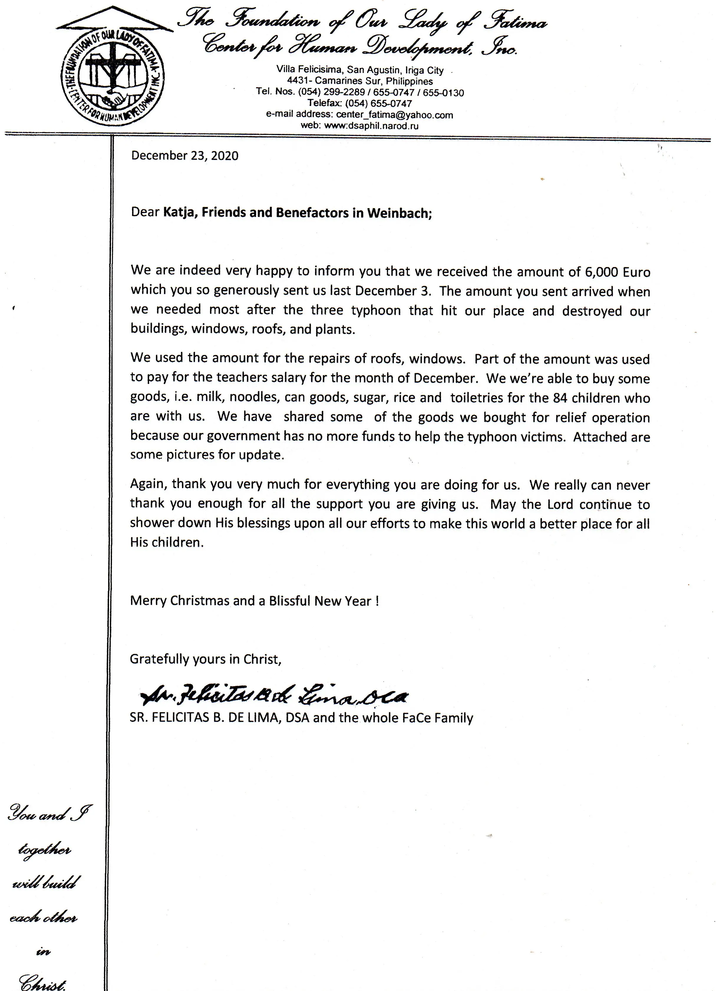 Unterhalb finden Sie Dankesschreiben.